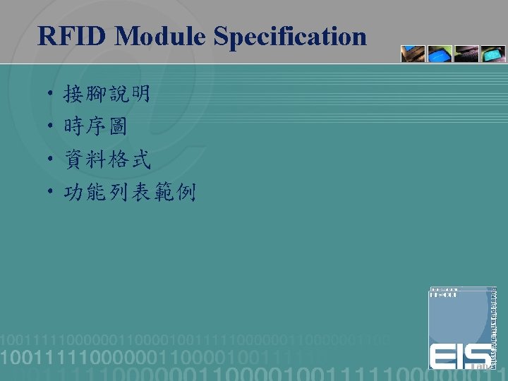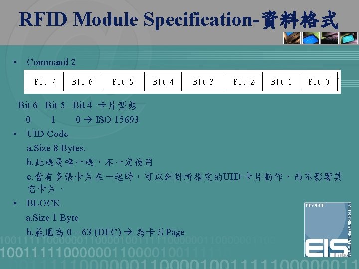 ![RFID Module Specification-資料格式 • Length ;資料長度, 此為 Command 1 至 [Data] 的 Bytes 數 RFID Module Specification-資料格式 • Length ;資料長度, 此為 Command 1 至 [Data] 的 Bytes 數](https://slidetodoc.com/presentation_image_h2/d021dcd152d844e1f9230d3973aada5e/image-20.jpg)