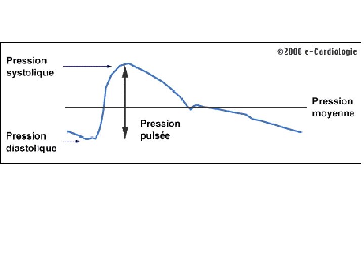 II. La Courbe de la PA : • Le profil de pression aortique montre qu’au niveau des grosses artères systémiques la pression artérielle n’est pas constante, elle oscille entre chaque battement : – Pression artérielle systolique : la valeur maximale de la PA est atteinte au pic d’éjection systolique – Pression artérielle diastolique : la valeur minimale est atteinte à la fin de la diastole (juste avant l’éjection ventriculaire)