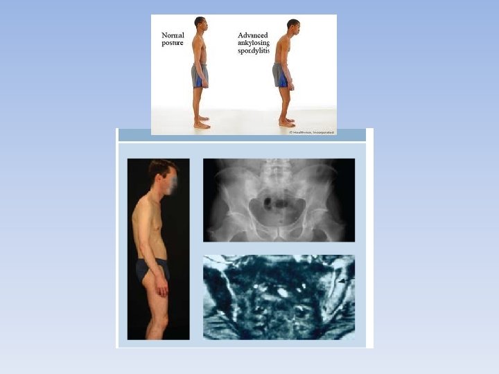 Epidemiology of ankylosing spondylitis • Men are slightly more affected than are women, with a ratio of about 2: 1. • There is a clear correlation between the prevalence of HLA-B 27 and the prevalence of AS in a given population: the higher the HLA-B 27 prevalence the higher the AS prevalence. • HLA-B 27 is positive in 90– 95% of AS patients and in about 80– 90% of patients with non-radiographic axial Sp. A. • This percentage goes down to about 60% in AS patients who also have psoriasis or IBD. • In predominant peripheral. Sp. A, less than 50% of patients are positive for HLA-B 27