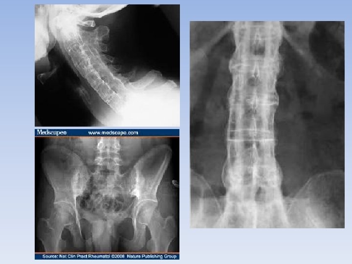 Spondyloarthropathies • Spondyloarthropathies (Sp. A) – Ankylosing spondylitis – Reactive arthritis with Reiter syndrome – Psoriatic arthritis – Arthritis associated with Crohn’s disease or ulcerative colitis
