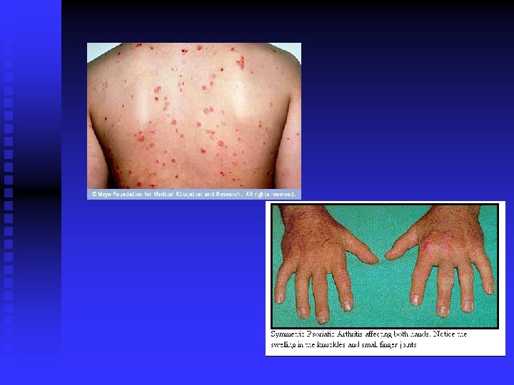 DMARDs: disease modifying antirheumatic drugs n n n Antimalarics Methotrexate Sulfasalazine Gold Leflunomide Imunosupressive drugs: cyklosporine cyklofosfamide