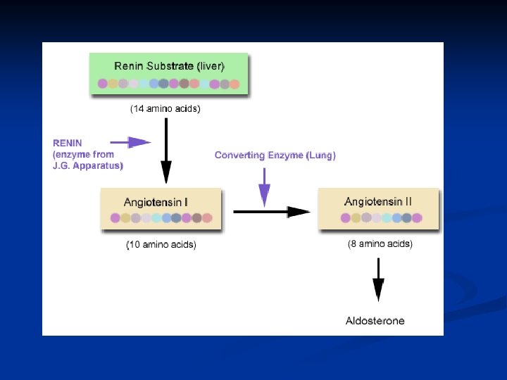 La diminuzione di Na. Cl tubulare (dovuta al lento passaggio e all’aumentato riassorbimento) è percepita dalle cellule della macula densa nel TCD e questo causa l’attivazione del sistema renina-angiotensina con produzione di angiotensina II che vasocostringe potentemente ae e favorisce il riassorbimento di acqua e sali.