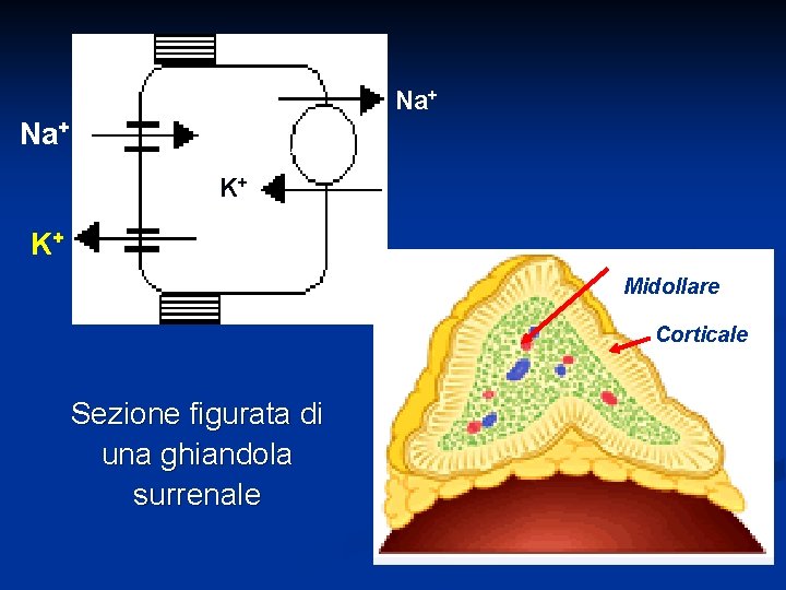 Na+ ATP K+ K+ Midollare Corticale Sezione figurata di una ghiandola surrenale
