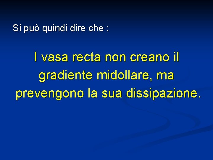 Si può quindi dire che : I vasa recta non creano il gradiente midollare, ma prevengono la sua dissipazione.