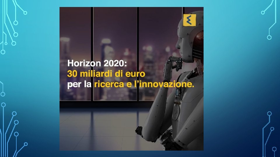 ORIZZONTE 2020: CONCLUSIONI • Dal 2014 al 2020 il programma orizzonte 2020 lavora con un finanziamento di circa 80 miliardi di euro; • È uno dei più grandi programmi al mondo per la ricerca e l’innovazione; • Oltre 76. 000 proposte sono state considerate idonee nei primi due anni; • Più di 9. 000 accordi di finanziamento sono stati firmati dal 1 -9 -2016 seguenti alle scadenze del 2014/2015; • Quasi 16 miliardi euro sono stati erogati per accrescere l’eccellenza scientifica, creare una leadership industriale e affrontare le sfide sociali.