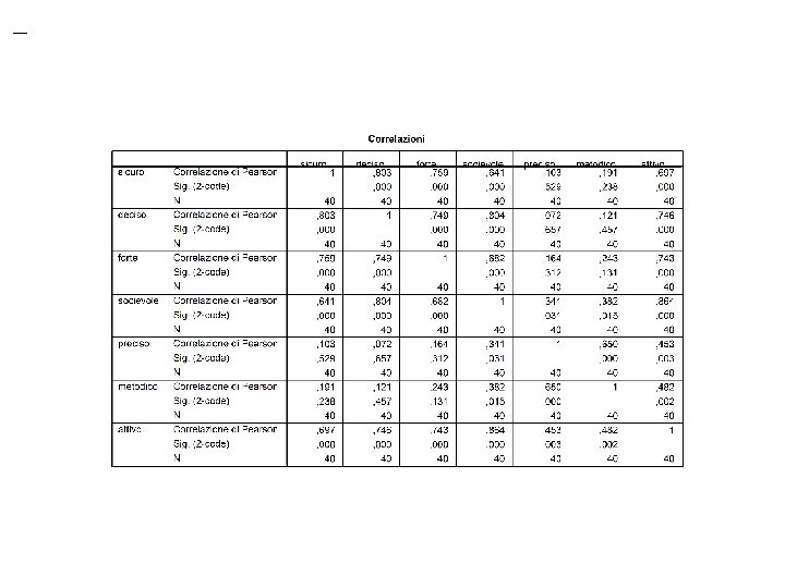 Y 1=CP 1=0. 196(sicuro)+0. 204(deciso)+0. 2(forte)+0. 212(socievole)+0. 096(preciso)+ +0. 111(metodico)+0. 22(attivo) Y 2=CP 2=-0. 207(sicuro)-0. 241(deciso)-0. 15(forte)-0. 002(socievole)+0. 526(preciso)+ +0. 492(metodico)+0. 069(attivo)