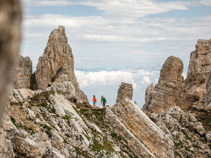Vf. Diamantiditiurm 2842 m. , cel mai inalt varf din masivul muntos Latemar. Rif. Torre di Pisa – Latemar Hütte 2671 m.
