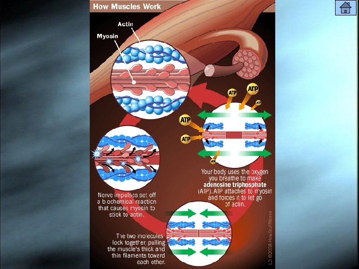 Ø The physiology of muscles change after one’s death. Ø ATP molecules stop working because of the lack of oxygen produced from chemical reactions. Ø Calcium pumping cells thus lose their energy, and the calcium concentration of the muscles increases. Ø The increase of calcium concentration in the muscles cause them to remain in a state of contraction. Also, since there is no available ATP, myosin and actin can’t slide away from each other. Ø When aerobic respiration ends, rigor mortis begins.