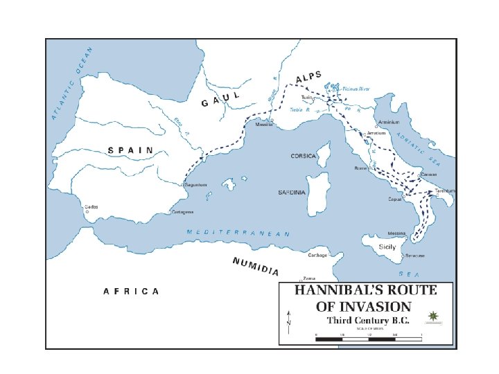 • Kartaginski vojskovodja Hanibal iznenadio je Rimljane i napao je Italiju kopnenim putem sa severa, računajući na podršku Gala • Njegov put od Nove Kartagine do severne Italije ubraja se u najveće podvige u istoriji čovečanstva; u Alpima je izgubio veliki broj vojnika