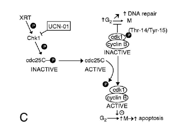 MECCANISMI D’AZIONE DI UCN-01 1. Inibizione isoforme Ca 2+-dipendenti della PKC (IC 50 = 30 n. M) 2. Inibizione isoforme Ca 2+-indipendenti della PKC (IC 50 ~ 600 n. M) 3. Arresto del ciclo cellulare inibizione CDKs aumento della sintesi di p 27 kip 1 e p 21 waf 1 4. Abolizione del checkpoint in G 2