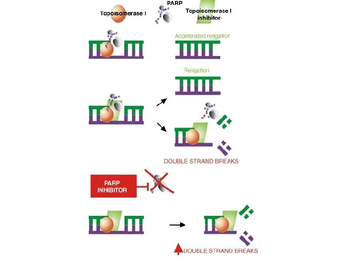 L’inibizione di PARP-1 aumenta le lesioni a doppio filamento nel DNA SSB PNK 1 XRCC 1 pol β Lig. III PARP Inhibition of PARP-1 prevents recruitment of repair factors to repair SSB Replication (S-phase) DNA DSB