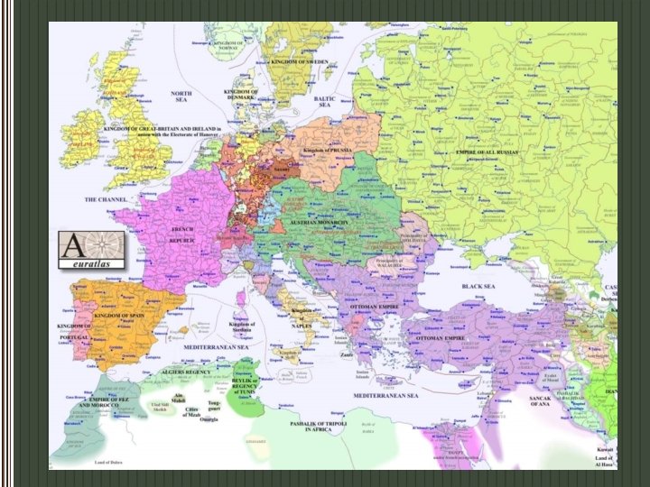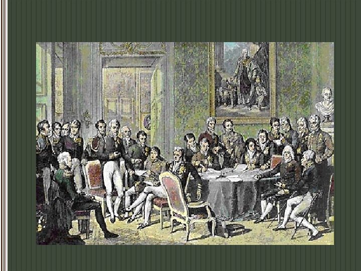 Congress of Vienna p Representatives of the 5 “Great Powers” met to design a new Europe • Russia • Prussia • Austria • Great Britain • France (under Louis XVIII) p The Goal = A stable and peaceful Europe