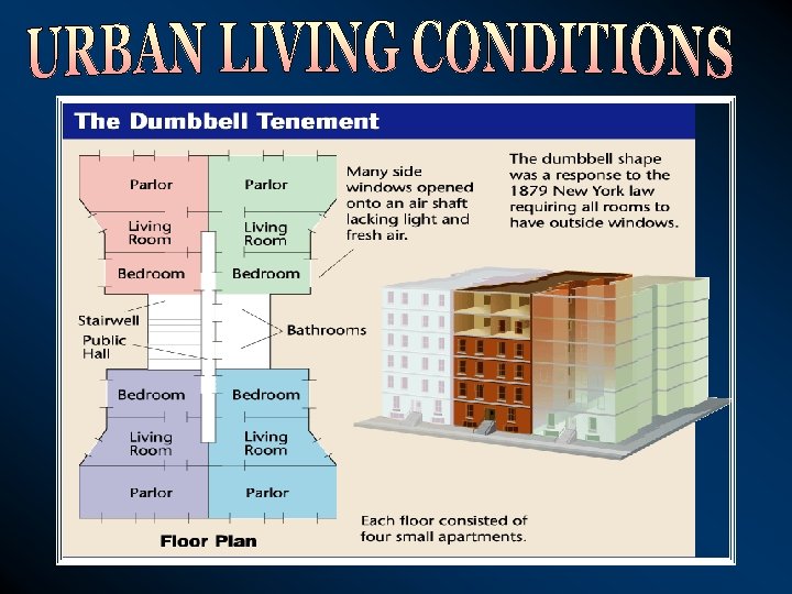 Housing v. Working-class families live in houses on outskirts or boardinghouses v. Later, row houses built for single families v. Immigrants take over row houses, 2– 3 families per house v. Tenements—multifamily urban dwellings, are Tenements overcrowded, unsanitary Transportation v. Mass transit —move large numbers of people along fixed routes v. By 20 th century, transit systems link city to suburbs