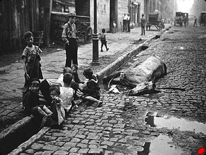 Water v 1860 s cities have inadequate or no piped water, indoor plumbing rare v Filtration introduced 1870 s, chlorination in 1908 Sanitation v Streets: manure, open gutters, factory smoke, poor trash collection v Contractors hired to sweep streets, collect garbage, clean outhouses-------often do not do job properly v By 1900, cities develop sewer lines, create sanitation departments