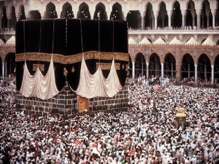 Worshipping Kaaba center of worship in city of Mecca Prayer called by mullahs, who are people educated in Islam and considered holy. Muslims believe in predetermination, or nothing can change Allah's plan.