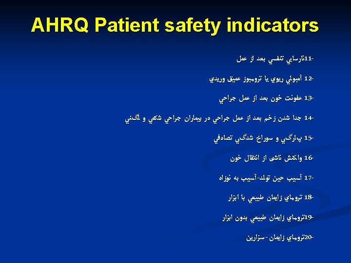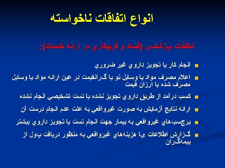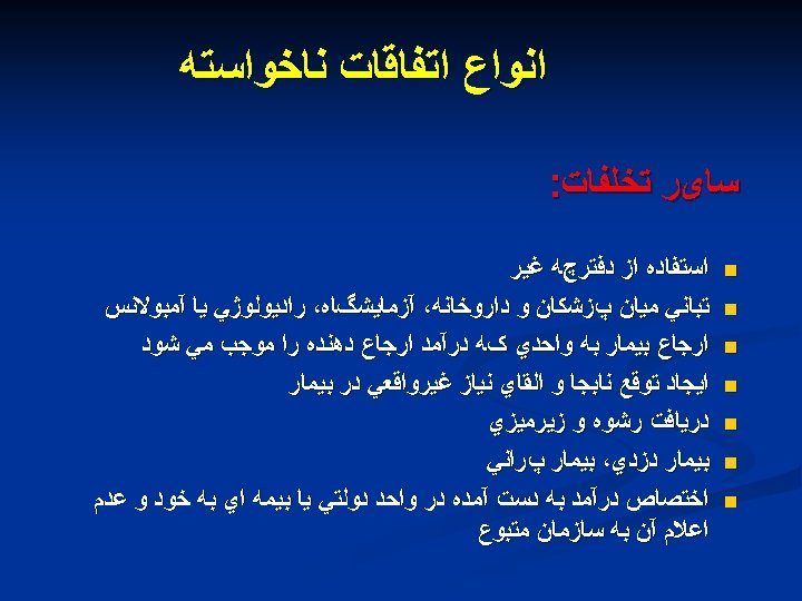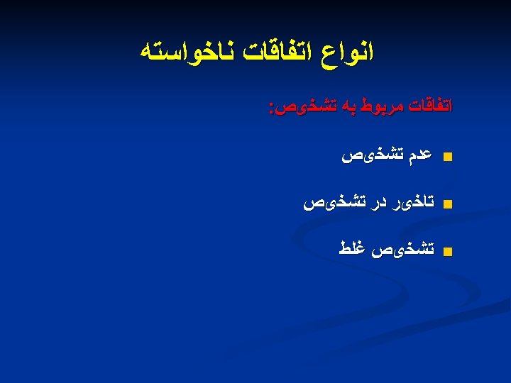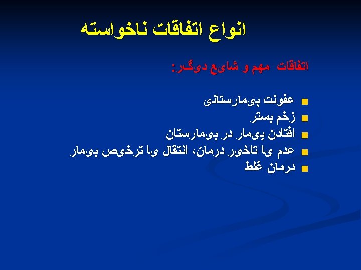 Sentinel events n Maternal death from labour or delivery n A baby discharged to the wrong family n Suicide of a patient in an in-patient unit n Medication error leading to the death of patient