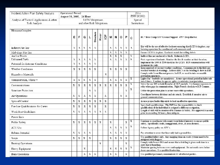 Time Critical § Risk assessments done “on the fly” by firefighters at the ground level. § Deference to expertise. § Make risk decisions at the appropriate level. § Doctrinal approach.