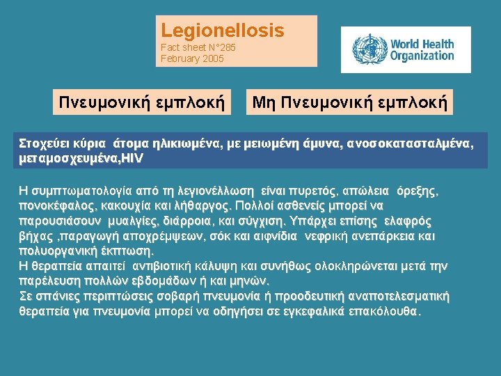 Appl Environ Microbiol. 2003 June; 69(6): 3412– 3420. PMCID: PMC 161485 doi: 10. 1128/AEM. 69. 6. 3412 -3420. 2003. Copyrigh Microbial Diversity of Biofilms in Dental Unit Water Systems Ruby Singh, 1 O. Colin Stine, 2 David L. Smith, 2 John K. Spitznagel, 3 Mohamed E. Labib, 4 and Henry N. Williams 1* Some organisms found in the DUWS may pose a health risk to some patients. Leptospira, the most common organism detected, can invade any susceptible mucosal membrane and cause leptospirosis. Sphingomonas and Legionella, two organisms found in the DUWL, are easily spread via aerosols. Sphingomonas sp. strains secrete viscous polysaccharides (24), which aid in their ability to adhere to and corrode surfaces of pipelines. Legionella species are known to cause respiratory infections (2). Both species have been found in hospital environments, including such devices as mechanical ventilators, catheters, and bronchofiberoscopes (11, 19). Their presence in DUWL is a concern, because studies have shown that aerosols generated from dental handpieces during treatment are sufficient to expose patients and dental personnel to the microorganisms in the DUWS (10).