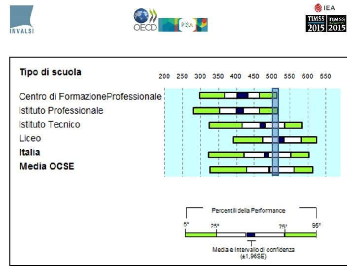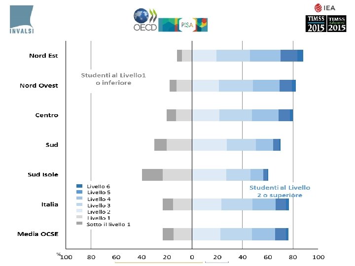 Differenze di genere • Il 2006 è l’unico ciclo dove si registrano differenze di genere: NO +13 maschi • Nel 2015 compaiono differenze significative a favore di maschi a livello nazionale (+17), al Centro (+23), Nord Est (+20), Sud (+15) • Rispetto al 2009 e 2012 le femmine fanno registrare un decremento di oltre 20 punti in tutte le macro-aree tranne il NE • Sul lungo periodo al Centro, NO e Sud Isole le ragazze tendono a diminuire la performance