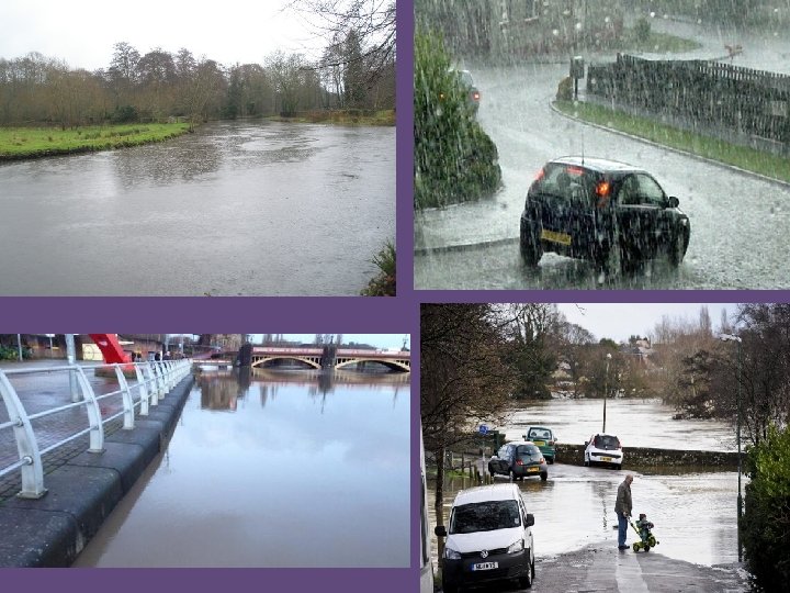 What would cause a rivers discharge to …… • Increase? • • • Heavy rainfall Long periods of rainfall Urban areas (land use) Impermeable rock (does NOT let water through e. g clay, slate. ) Saturated soils Steep gradient Low temperatures Surface run off Snow melt • Decrease? • No/little rainfall • Trees/vegetation (intercepts and takes in water) • Permeable rocks e. g limestone, chalk. • Porous rocks • Gentle gradient • Dry soils