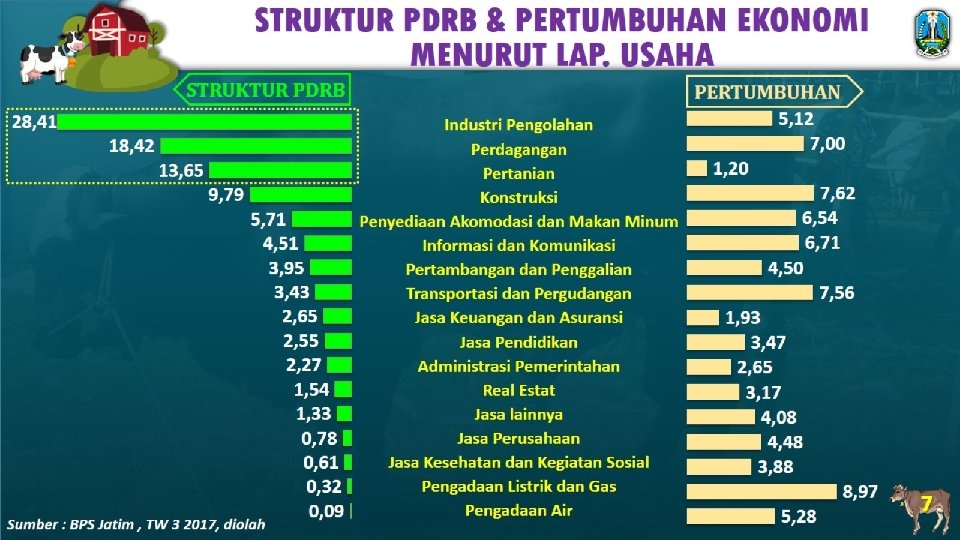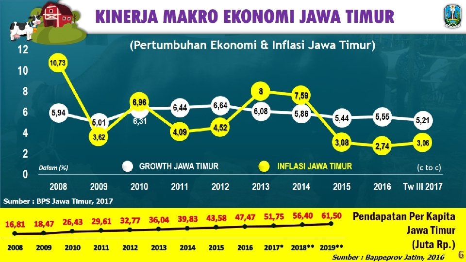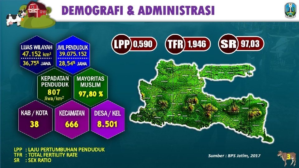 PDRB Sub Sektor Peternakan NASIONAL PDRB & NTPt PROVINSI JAWA TIMUR N O PDRB JAWA TIMUR ( Milyar Rp ) NASIONAL ( Milyar Rp ) % 1. PDRB (ADHB) 2015 46. 242 182. 056 25, 4 % 2. PDRB (ADHB) 49. 995 199. 474 25, 1 % PDRB Sub 2016 Sektor Peternakan JAWA TIMUR PDRB (ADHK) PDRB Sub Sektor Peternakan JAWA TIMUR berkontribusi sebesar 25 % terhadap PDRB Nasional NTPt Jawa Timur pada tahun 2016 adalah 110, 46 artinya PETANI Peternakan mengalami SURPLUS (pendapatan naik lebih besar dari pada pengeluaran) 42, 254 29, 705 2014 PDRB (ADHB) 46, 242 49, 995 30, 303 31, 246 2015 2016 KETERANGAN PDRB ADHK: Produk Domestik Regiononal Bruto Atas Dasar Harga Konstan PDRB ADHB: Produk Domestik Regiononal Bruto Atas Dasar Harga Berlaku NTPt : Nilai Tukar Petani Peternakan Nilai : Dalam Satuan Milyar Rupiah SUMBER : BPS Jawa Timur