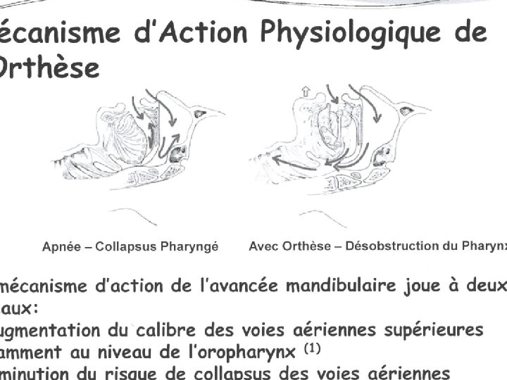 Mode d’action des OAM • - élargissement des voies aériennes supérieures - diminution de la collapsibilité des VAS