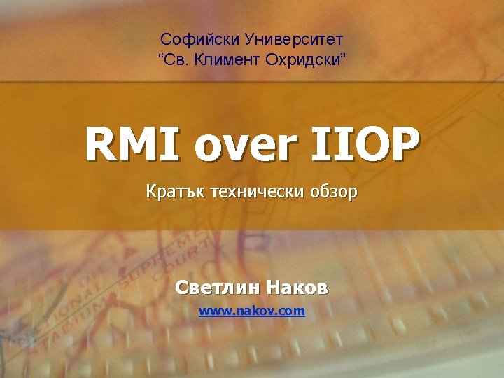 Използвана литература • Wollrath A. and Waldo J. , The Java Tutorial: RMI – http: //java. sun. com/docs/books/tutorial/rmi/ • Tech. Target Network – IIOP Glossary Definition – http: //searchnetworking. techtarget. com/g. Definition/0, 2 94236, sid 7_gci 214019, 00. html • Java RMI-IIOP Documentation – http: //java. sun. com/j 2 se/1. 3/docs/guide/rmi-iiop/ • Hagge D. , RMI-IIOP in the Enterprise – http: //www 106. ibm. com/developerworks/java/library/j-rmi-iiop/ • Andoh A. , Nash S. , RMI over IIOP – http: //www. javaworld. com/javaworld/jw-12 -1999/jw 12 -iiop. html 14