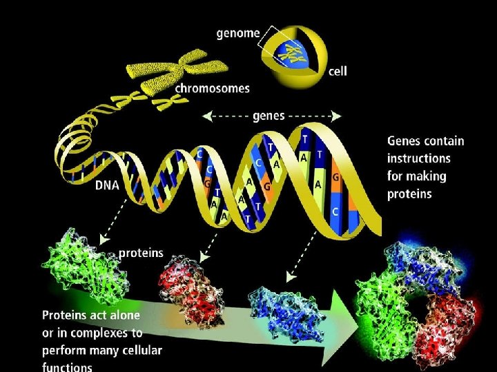 Life is orchestrated by Proteins § Combinations of 20 different amino acids linked in long chains § Function is determined by amino acid sequence § Amino acid sequence is determined by DNA sequence § Used for enzymes, hair, muscles, cell parts