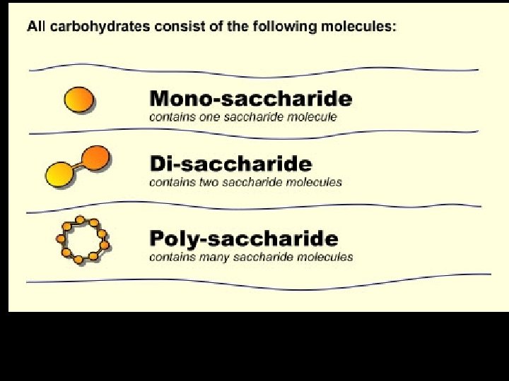 Polysaccharides • Polysaccharides are chains of 3 or more monosaccharides such as starch, which is an example of a macromolecule (a large molecule made up of smaller molecules). • In organisms, polysaccharides function as store houses of energy.