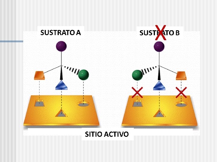 Propiedades Generales de las Enzimas: n n n n Presentan un sitio activo Eficiencia catalítica (mayor velocidad de reacción) Condiciones de reacción (tº, p. H y presión) compatible con la vida Especificidad Grupos prostéticos Regulación de su actividad Localización celular