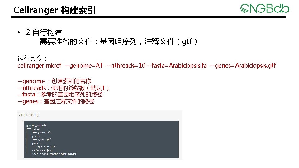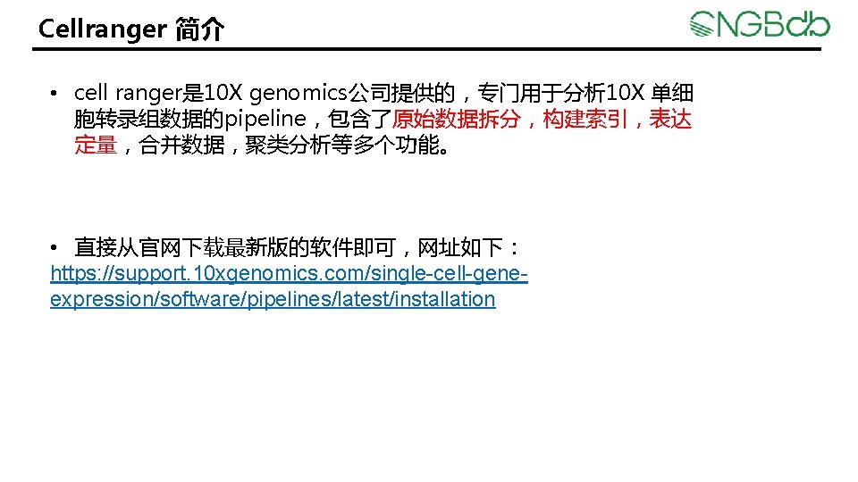 RNAseq Jie Li Cellranger Step 1 wget O Slides: 10 Download presentation 单细胞 RNA-seq 分析 Jie Li Cellranger 安装 • Step 1. 下载安装包 wget -O cellranger-4. 0. 0. tar. gz "https: //cf. 10 xgenomics. com/releases/cell-exp/cellranger 4. 0. 0. tar. gz? Expires=1597429741&Policy=ey. JTd. GF 0 ZW 1 lbn. Qi. Olt 7 Il. Jlc 291 cm. Nl. Ijoia. HR 0 c. HM 6 Ly 9 j. Zi 4 x. MHhn. ZW 5 vb. Wljcy 5 jb 20 vcm. Vs. Z WFz. ZXMv. Y 2 Vsb. C 1 le. HAv. Y 2 Vsb. HJhbmdlci 00 Lj. Au. MC 50 YXIu. Z 3 oi. LCJDb 25 ka. XRpb 24 i. Onsi. RGF 0 ZUxlc 3 NUa. GFu. Ijp 7 Ik. FXUzp. Fc. G 9 ja. FR pb. WUi. Oj. E 1 OTc 0 Mjk 3 NDF 9 f. X 1 df. Q__&Signature=DEa 71 Hwypi. U 8 kt. Ec-Qy 4 CIc 33 n. Tq 05 Qa 31 THEAy 7 FIs. BS 6 bd. Q 1 p. C 3 iyt~nr. TUf. Cf 0 j. X 9 Ty. Mzouw. GVh. Oa 1 INHb 6 T 43 Zc. Rjt. WRQv. Od. Ai 8 Cwk. Lnsu 6 -ps. T~e. Dxtnl. Fk. MGj. ADm. Y 2 tt. G 7 Rp. UIi. G 5 QTy. Nkm. DE 9 n 2 j. S 8 w. Teb. Ey. Zka. G~VVE 31 ot. MK-s 9 myt 6 Wp 8 BWs. NJmy. Iq 6451 wc. N~CU 60 t. ZTTdg. ZPXOKhs. Mpvpl. Ir. U 9 Go. UJH 73 -N 5 i 1 Ph. UMok 64 GZlsmti 02 U 48 Xwg 5 OKEpg 9 o. Ry. Jy 3 XA 05 PJKZAOLku 1 Yzsa. XL 5 amh. OSYYe. Ff 2 w. Mg. DBHs. RWIf. O 4 Cw. LTUVru. Uodj. ERw__&Key-Pair-Id=APKAI 7 S 6 A 5 RYOXBWRPDA" Cellranger 构建索引 • 1. 官网下载(人,小鼠的索引) 下载网址:https: //support. 10 xgenomics. com/single-cell-geneexpression/software/downloads/latest Cellranger 定量 运行命令: cellranger count --id=sample --transcriptome=/xx/ AT --fastqs=/xxx/fastq_path --localcores=8 --localmem=64 参数解释: id:样本名(唯一性) transcriptome:上一步创建的索引的目录名 fastqs:下机数据的目录 localcores:内核 localmem:内存 其它参数可以参考: https: //support. 10 xgenomics. com/single-cell-gene-expression/software/pipelines/latest/using/count Cellranger 定量 结果:
