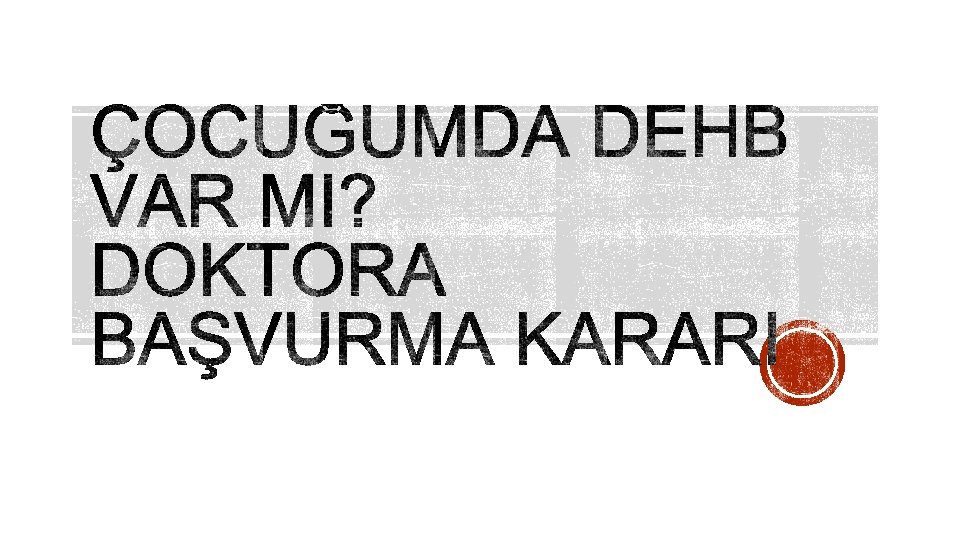 § Akranlarıyla karşılaştırıldığında çok daha fazla oranda hareketlilik, dürtüsellik belirtileri varsa, § Sevdiği şeylere gösterdiği ilgiyi derslerine de gösterse çok daha başarılı olur diyorsanız, § Çocuğun kendini kontrol etmesinin çok eksik olduğu birkaç kişi tarafından söyleniyorsa § Ona zarar gelmesini önlemek için çaba harcamak gerekiyorsa, § Davranışları yüzünden akranları ondan kaçıyorsa,