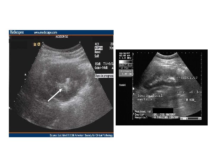 Ayırıcı Tanı • Kadınlarda: (Jinekoljik problemler) 1. over torsiyonu 2. over kisti 3. ektopik gebelik • Erkeklerde: 1. Testis tümörleri 2. Epididimoorşit 3. Prostatit • Diğer karın ağrısı yapan sebepler: Apandisit, kolesistit, divertikülit, kolit, kabızlık, herniler, arteriyel anevrizmalar • Diğer hematüri sebepleri (Glomerülonefrit)