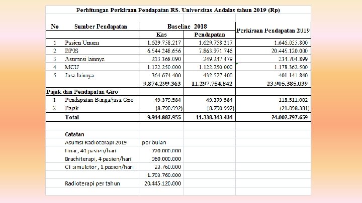 Rencana kerja Pendidikan 2019 • • • Finalisasi regulasi pendidikan terkait pelayanan bagi peserta didik di RS Unand. Peningkatan dosen pendidik klinis. Alokasi lahan pendidikan klinis bagi 30% mahasiswa FK. Unand, Fakultas Kesehatan lainnya dan mahasiswa di lingkungan Unand Mengimplementasikan konsep Academic Health System (AHS) dengan target capain 2021 Menyediakan fasilitas skills lab dan preceptor guna menunjang kegiatan pendidikan di RS Unand