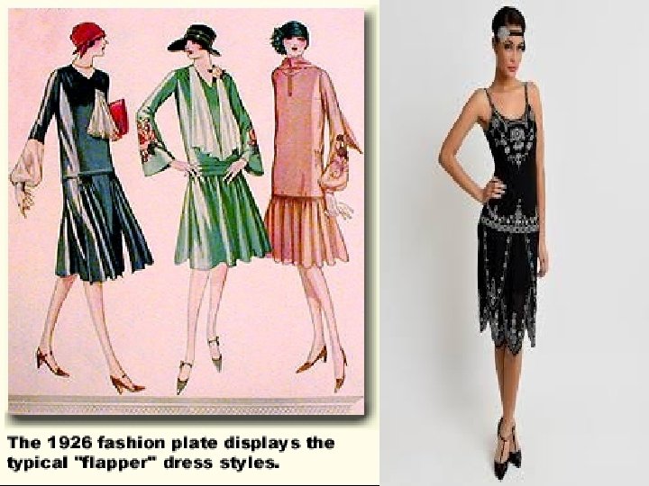 Flappers • modern women of the 1920 s – young, rebellious, fun-loving, and bold – short hair, short dresses (to the knees), more makeup (esp. lipstick) – attitudes changes ex: began to and in public – smoke drink