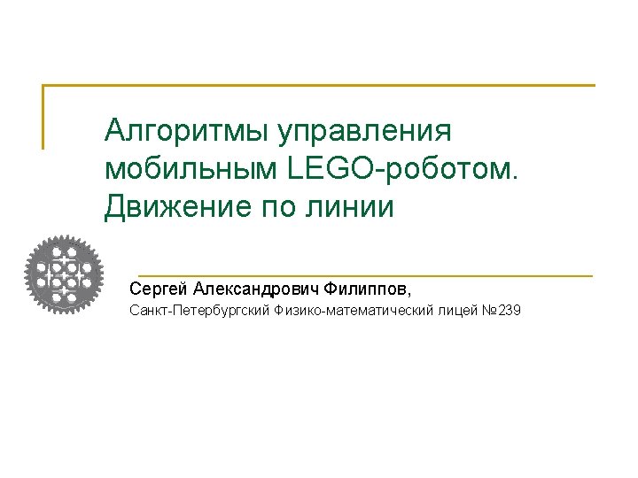 Контроль скорости на горке n. Motor. Encoder[motor. B]=0; n. Motor. Encoder[motor. C]=0; Clear. Timer(T 2); int speed = 120; // градусов в секунду s 1 float kv=1; while(true) { int enc = (n. Motor. Encoder[motor. B] + n. Motor. Encoder[motor. C]) / 2; int err = time 1[T 2] * 0. 001 * speed – enc; v = err * kv; kp = 1 + v / 10; // Корректировка коэффициента. . . // здесь автомат и регулятор motor[motor. B]=-v+u; motor[motor. B]=-v-u; sleep(1); } s 3 s 2
