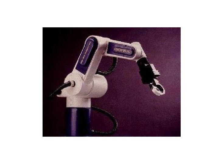 Características Gerais: § Braço manipulador – emula a função do braço humano: através do seu movimento manipula objetos (ferramentas, peças, etc. ) no seu espaço de trabalho. § Pelo menos um ponto da sua estrutura é fixo na sua base. § Seu espaço de trabalho é limitado a uma região próxima a esse ponto fixo.