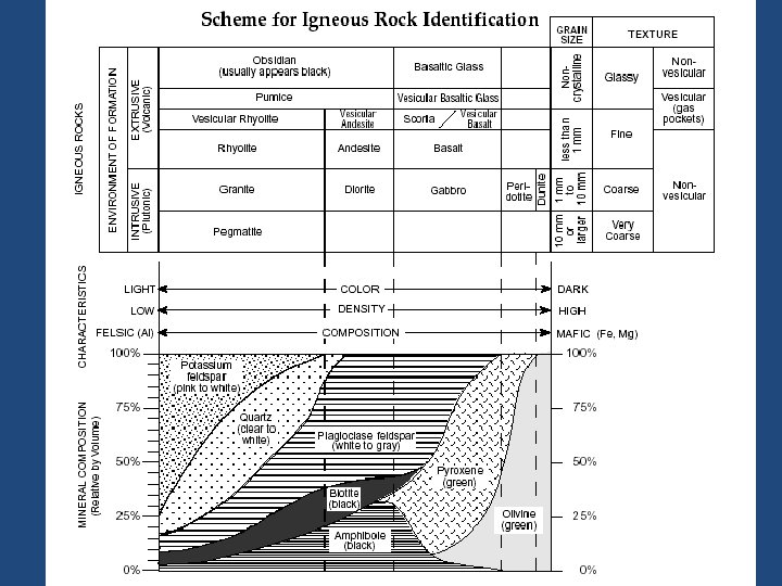 Extrusive Igneous Rocks Small crystals, or glassy texture