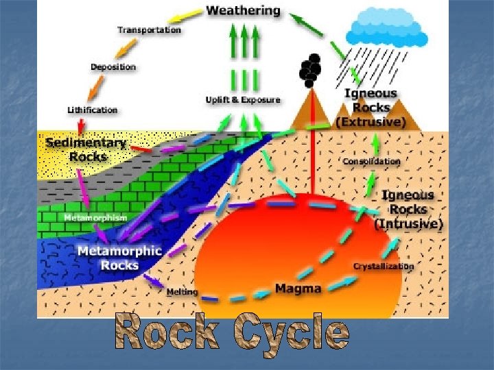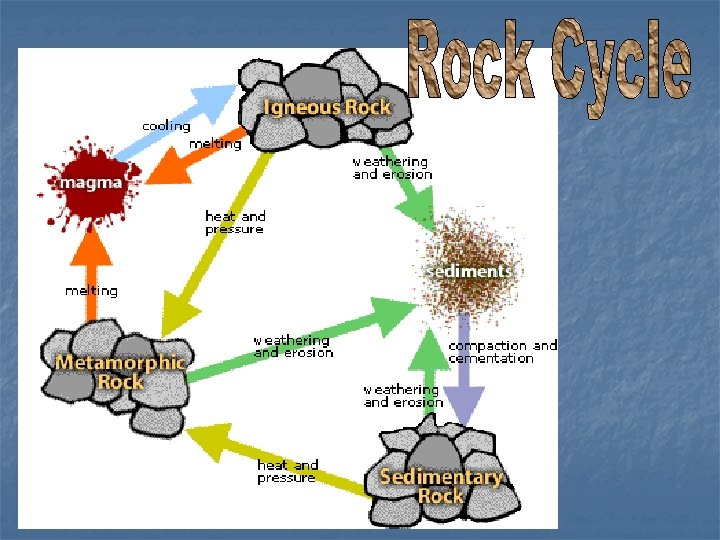 The Rock Cycle n The diagram of the rock cycle shows how the earth's rocks are changed again and again