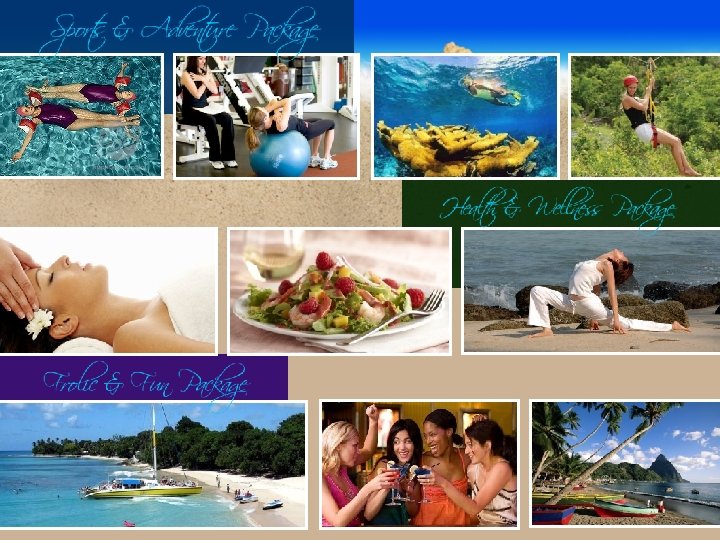 LOCATION Located in the north west coast of Saint Lucia lies the Bay Gardens Resorts, your ultimate Caribbean vacation getaway. The Bay Gardens properties are ideally situated in the midst of Rodney Bay Tourist Village that hosts Saint Lucia’s pulsating night life, hip bars, restaurants with several world class dining options, and duty free shopping. We are 15 minutes or less from historical sites and parks, marina, golf, outdoor activities and undeniably the best stretch of beach on the island. BAY GARDENS BEACH RESORT & SPA TARGET AUDIENCE We cater to all vacationers – from families, couples, honeymooners, wedding groups, business travelers and individuals. BAY GARDENS HOTEL BAY GARDENS INN GROUP ACCOMMODATIONS AND AMENITIES The group features a total of 192 rooms, 5 conference rooms, 4 restaurants and 6 bars - able to meet the tastes of the most discerning traveler. 2 Gift shops, State-ofthe Art Fitness Center, a Spa, Beauty & Hair Salon, Onsite tour desk, water sports and a dive shop. Stay at 1 property and enjoy access to Beach at Bay Gardens Beach Resort and the dining facilities of all 3. Our motto is Relax, Romance, Indulge, Connect & Play. Experience the true re-definition of the Caribbean vacation at the Bay Gardens Resorts in Saint Lucia.