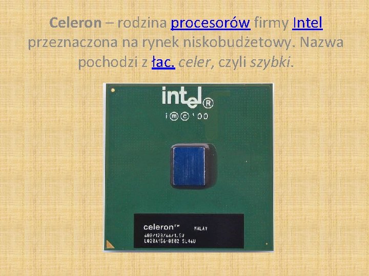 Celeron – rodzina procesorów firmy Intel przeznaczona na rynek niskobudżetowy. Nazwa pochodzi z łac. celer, czyli szybki.