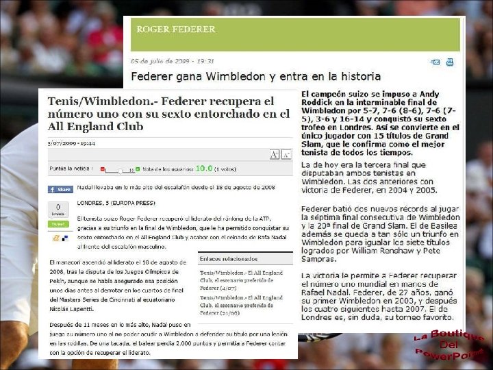 15 5 de julio de 2009 def. con Andy Roddick 5 -7 7 -6(6) 7 -6(5) 3 -6 16 -14