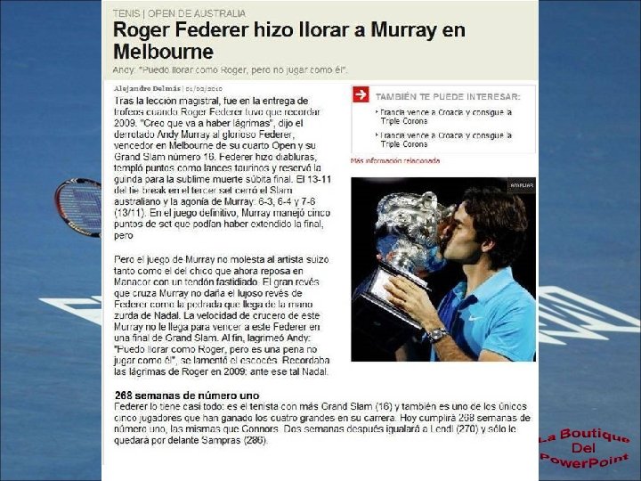 16 31 de enero de 2010 def. con Andy Murray 6 -3 6 -4 7 -6 (11)