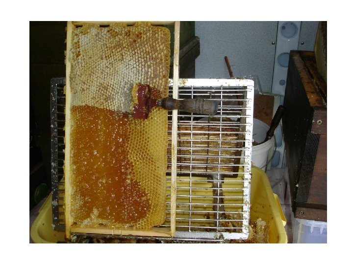 Prehliadky včiel a včelársky rok Ihneď, keď je prvé pekné počasie s teplotou nad 14°C so žiadnym, alebo slabým vetrom a včely lietajú, urobíme prvú krátku prehliadku. V úli to len tak bzuní, včely sú zamestnané upratovaním a znášaním peľu a nektáru. Pri prvej prehliadke kontrolujeme prítomnosť matky, veľkosť rodiny, stav zásob, poprípade odoberiem nádstavok, ak treba dodám zásoby a začínam s obnovou diela. Kontrola prítomnosti matky, stavu zásob a odobranie zbytočného nádstavku urobíme automaticky ihneď po otvorení úľa. Na základe hmotnosti nádstavku zistíme stav zásob a keď vidíme plod, vieme, že matka je tam a nestrácame čas jej hľadaním. Už posledný marcový týždeň, alebo prvý aprílový začíname s výmenou plástov. Najmä v spodnom nádstavku nájdeme plásty, ktoré nie sú včelami obsadené. Na týchto môže byť pleseň, alebo sú tmavé, čím sú potencionálny nositelia infekcie. Tieto ihneď odstránime. Zaplesnené dielo. Keď včely nezimujú nad otvoreným zasieťovaným dnom, tak sa často naskytne pri prvej prehliadke takýto pohľad.