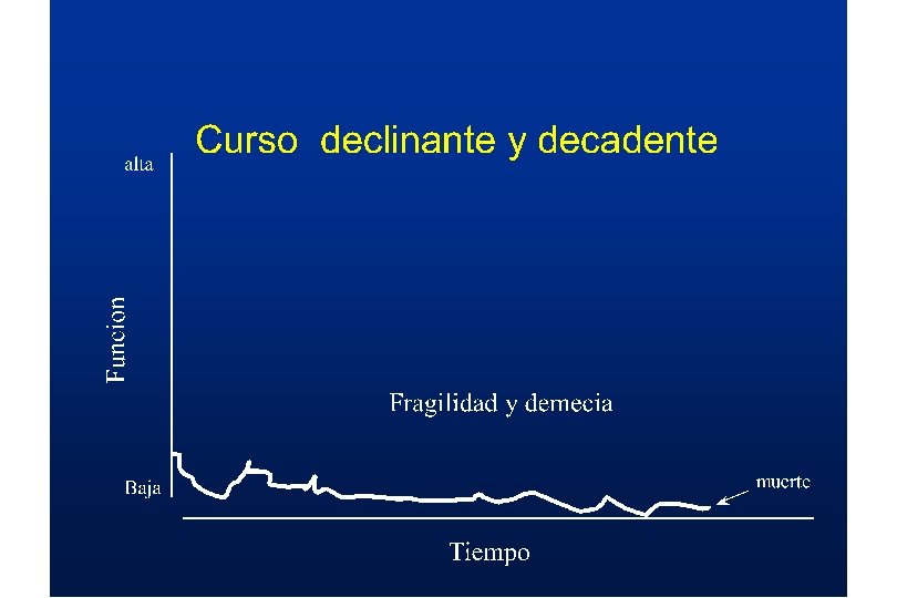 Demencia Severa • Postración como un marcador a considerar • No reconocimiento de los miembros de la familia, ausencia de comunicación, dificultad para tomar medicación oral • Considere FAST 7 antes de suspender la medicacion • Maneje las expectativas “Tiene sentido esta intervención? ”