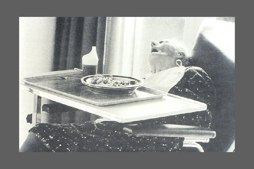 Ultimos estadios de la demencia • Severa – Rigidez , incontinencia, dificultades en la ingesta, deterioro motor • Terminal – Postrado, mudo, disfagia, infecciones intercurrentes Volicer L, Hurley AC eds. Hospice Care for Patients with Advanced Prog. Dementia. 1998