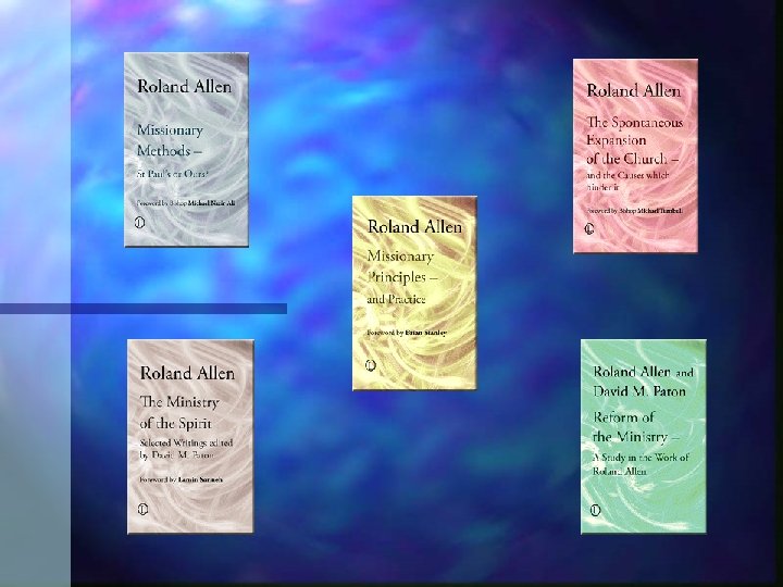 Biographical Sketch n 1919 published Educational Principles and Missionary Methods n Later, Allen’s missiology conflicted with other members of the World Dominion Mvt. yet he continued to be the principal contributor to the journal World Dominion in the 1920 s n 1923 published. Voluntary Clergy