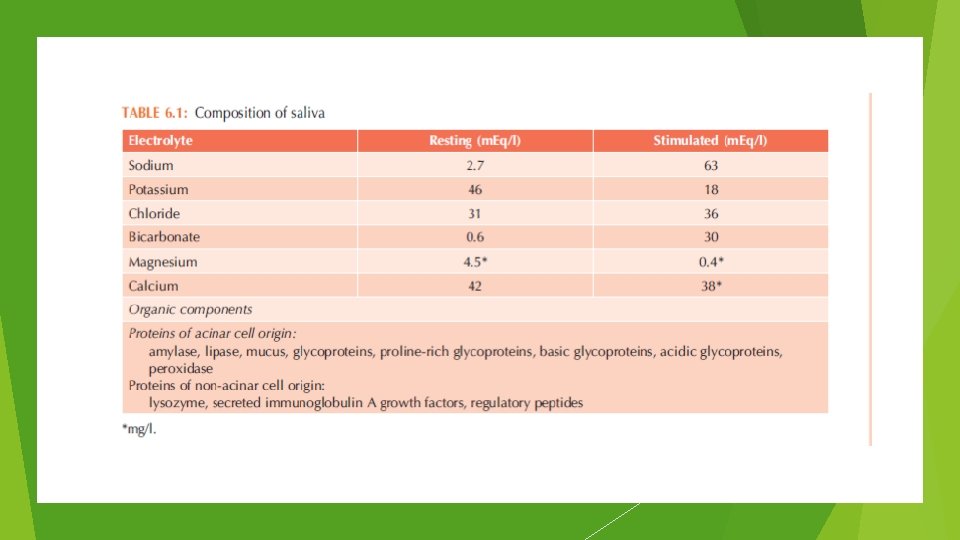 Importance of saliva in taste perception The chemical digestion of starches is initiated by the salivary amylase, which breaks it down to maltose. The optimum p. H of salivary amylase is 6. 8. However the salivary p. H ranges from 5. 8 to 7. 4 depending on the rate of flow. The presence of two minerals calcium and sodium in the saliva serves as a carrier of the depolarizing potential that initiates the taste signals. The concentration of sodium ions also help in the detection of normal absolute threshold of sodium chloride. The carbonic acid which is released as a buffer upon the detection of acids helps in restoring p. H and maintains acid sensitivity. Saliva also helps in controlling temperature by means of the relatively high specific heat control of the water component. The saliva contains thiocyanate ions. A high content of thiocyanate ions increases the threshold value for sweet taste and decreases for bitter. Some components of the matrix (such as sugar and salt) can also influence the saliva–air partition of volatile compounds by changing the physicochemical conditions of the saliva phase