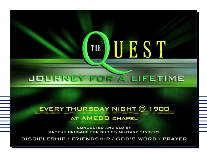 Lunch Bible Study Thursdays at 1130 hrs at AMEDD Chapel. Food and drink will be Provided. (For permanent party soldiers and civilians) POC: SGT Nicholas Dye @ 221 -4019