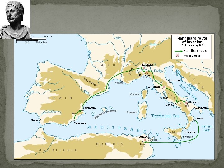 Tweede Punische Oorlog (218 -201) �Oorzaak: onenigheid over de hegemonie over Saguntum in Iberia (Spanje) �Tocht van Hannibal. In 218 -216 grote overwinningen op de Romeinen (Slag bij Cannae 216) �Rome weet stand te houden �"Vincere scis, Hannibal; victoria uti nescis. " (Livy 22. 51)